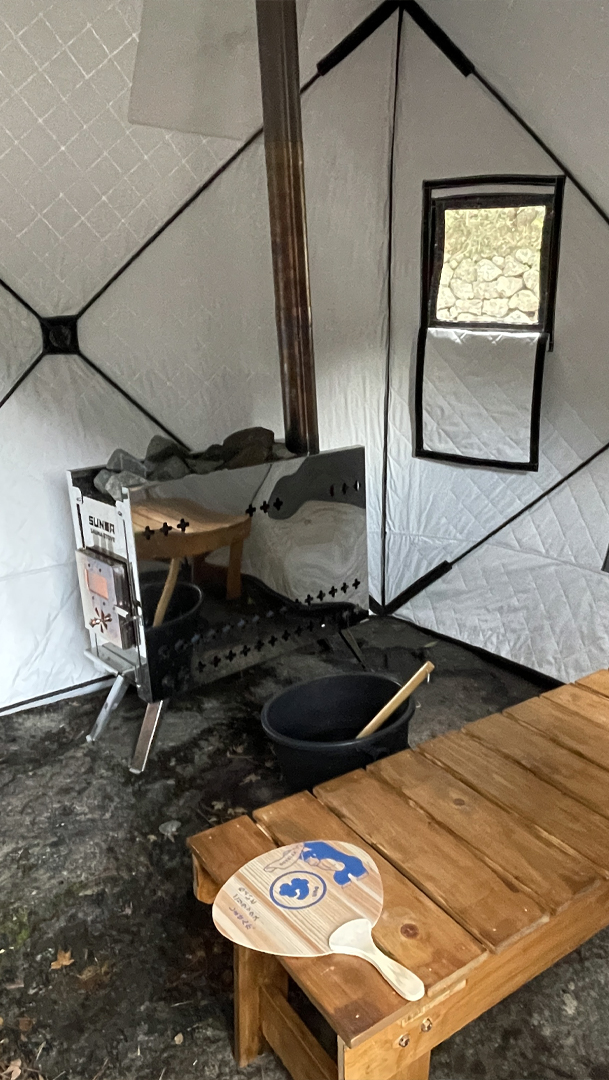 マイナスイオンたっぷりの自然の中で、澄んだ空気と美しい景色に癒されるひととき。1組貸切のテントサウナ体験や地元の食材を使ったアウトドア料理も満喫できます。