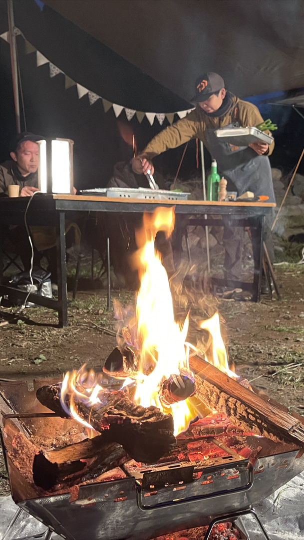 満点の星空の下で焚き火を囲み、